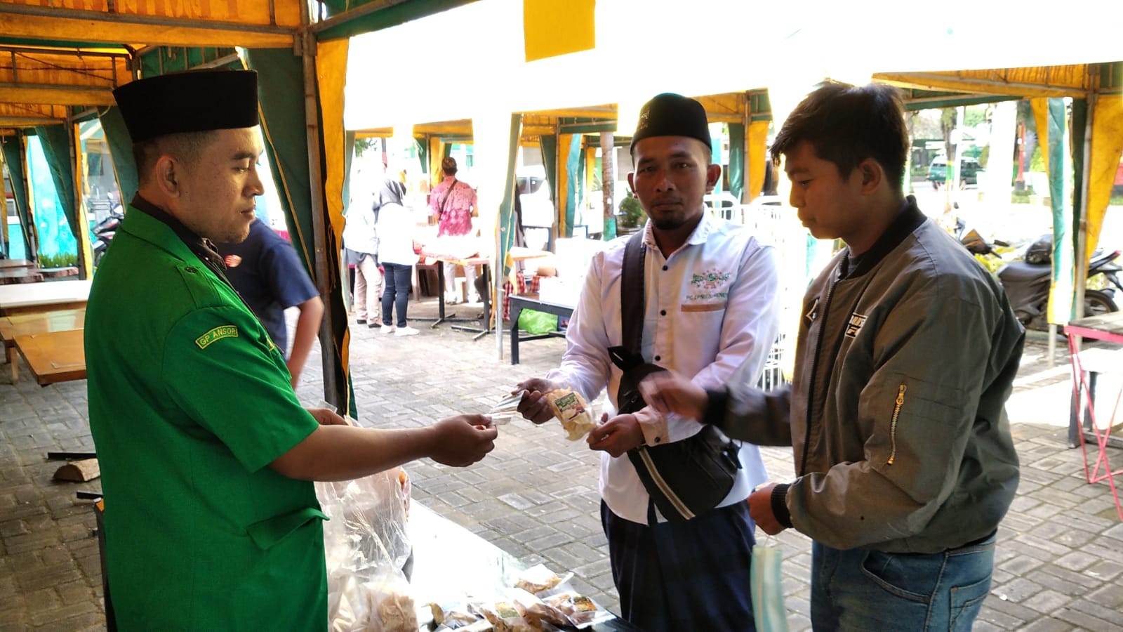 Setelah beberapa menit, Abu Zairi selaku pengurus bagian Literasi dan Edukasi LPNU Sumenep menjadi pembeli pertama produk BUM Ansor Basoka Rubaru.