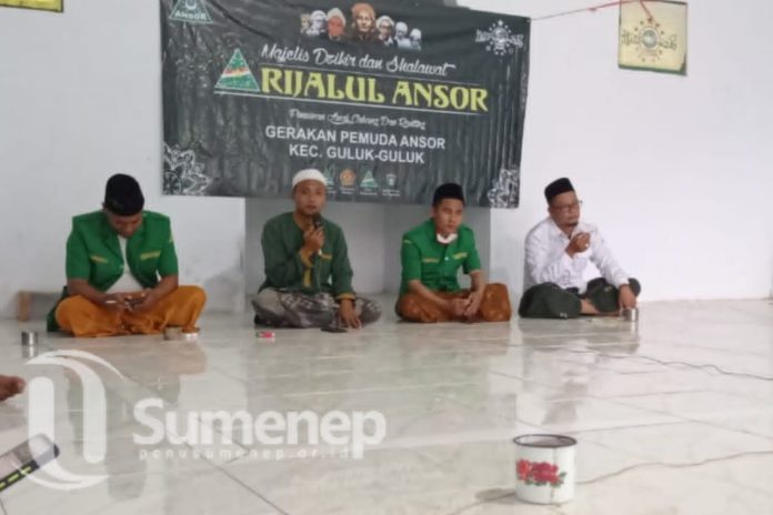 Guna merawat jalinan silaturahim antar kader, Pimpinan Anak Cabang (PAC) Gerakan Pemuda (GP) Ansor Kecamatan Guluk-Guluk menggelar pertemuan rutin Majelis Dzikir dan Shalawat Rijalul Ansor (MDSRA). Kegiatan yang dihadiri oleh KH. Md. Widadi Rohim, Ketua Majelis Wakil Cabang Nahdlatul Ulama (MWCNU) Guluk-Guluk ini dipusatkan di Kantor MWCNU Guluk-Guluk, Jum’at (22/01/2021).