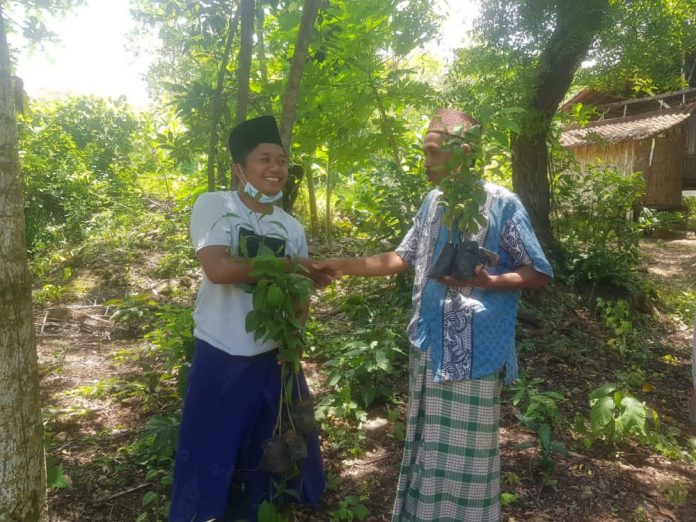 Bibit diserahkan secara simbolis oleh LPPNU Sumenep kepada Ketua MWCNU Pragaan.