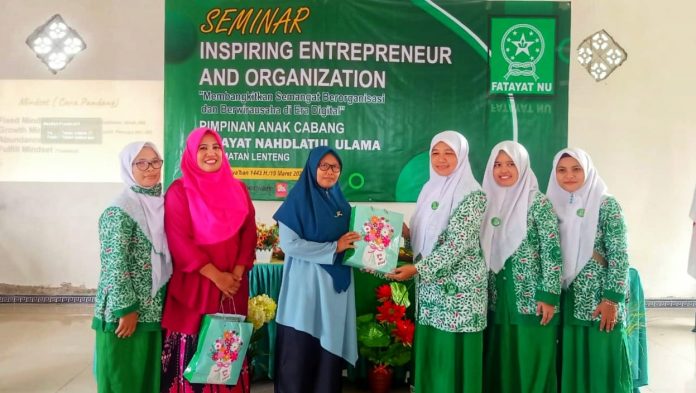 Pengurus Pimpinan Anak Cabang (PAC) Fatayat Nahdlatul Ulama Lenteng menggelar Seminar Inspiring Entrepreneur And Organization dengan tajuk “Membangkitkan Semangat Berorganisasi dan Berwirausaha di Era Digital” pada Sabtu (19/03/2022) di Aula MWCNU setempat.