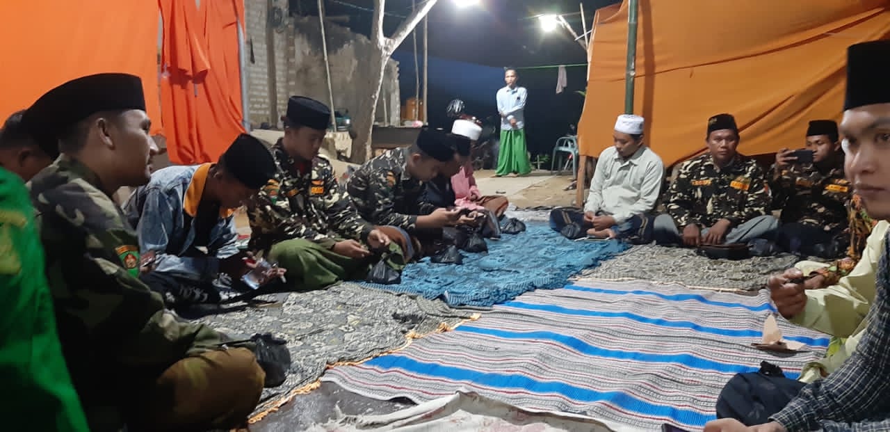 Wakil Ketua Satuan Koordinasi Rayon (Satkoryon) Banser Giligenting, Asbu, bersama dua anggotanya ta’ziyah ke kediaman mantan Kasatkoryon Banser Pragaan, K. Kurdi Mua’rif, Aeng Panas, Pragaan, untuk berdoa bersama (tahlil) pada malam ke-tujuh, Senin (23/11).
