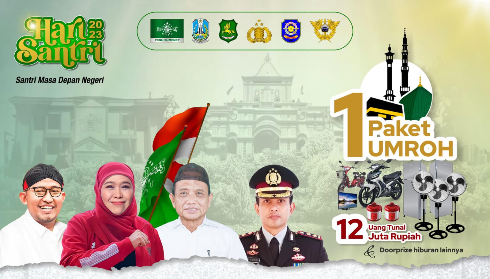 Ketua Panitia Pelaksana Hari Santri 2023, KH Abdul Wasid mengatakan bahwa pihaknya menyiapkan hadiah utama berupa satu paket umrah. Tak hanya itu, panitia juga telah menyiapkan sejumlah hadiah lainnya. Seperti motor, sepeda listrik, kulkas, rice cooker, kipas angin, hingga uang tunai senilai Rp12 juta.