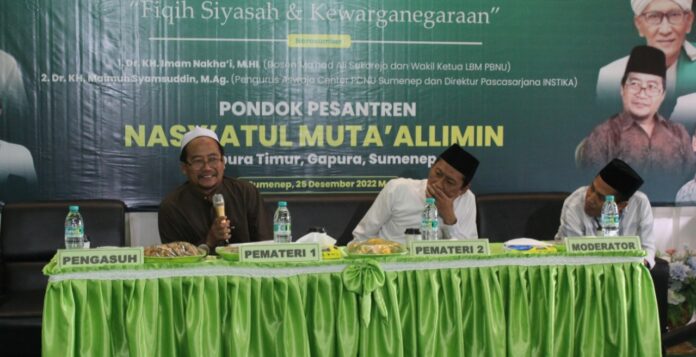 Halaqah Fiqih Peradaban yang diinisiasi oleh Pengurus Besar Nahdlatul Ulama (PBNU) sudah berlangsung di 250 titik pesantren Indonesia. Selain pesantren Annuqayah Guluk-Guluk yang dijadikan tempat halaqah tersebut, Pondok Pesantren Nasy’atul Muta’allimin Gapura menjadi tuan rumah penyelenggaraan halaqah dengan mengusung tema ‘Fiqh Siyasah dan Kewarganegaraan.’ Ahad (25/12/2022) di Aula KH A Zubairi Mz.