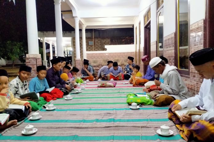 Berangkat dari hal itu, Mushalla Al-Muttaqin Lembung Barat, Lenteng mengadakan kegiatan rutin mingguan berupa Kompolan Tadarus Al-Qur’an, Jum’at (10/12/2021) malam. Untuk malam ini, kompolan diletakkan di rumah bapak Ahmad di Dusun Daja Songai.