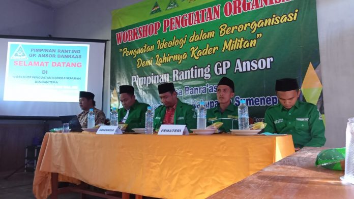 Pimpinan Ranting (PR) Gerakan Pemuda (GP) Ansor Desa Banraas pulau Giliiyang Kecamatan Dungkek Kabupaten Sumenep menggelar Workshop Penguatan Organisasi pada Rabu, (29/09/2021).