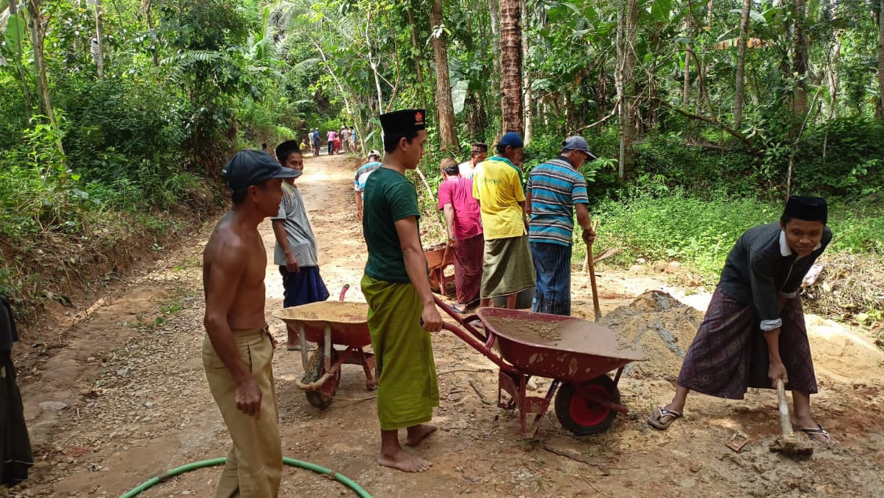 Sekitar jam 07.00 WIB, masyarakat mulai berdatangan, membawa alat yang diperlukan, dan segera memperbaiki jalan dengan semangat gotong royong yang tinggi. Tak peduli keringat berceceran oleh terik matahari, semua tetap semangat demi kenyamanan bersama.