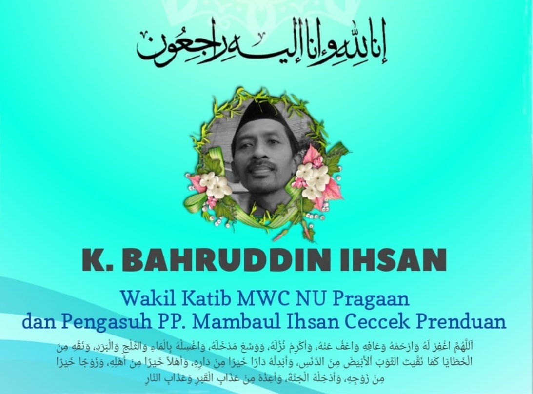 Kabar duka datang dari Kecamatan Pragaan. Musababnya, Kiai Bahruddin Ihsan, Wakil Katib Majelis Wakil Cabang Nahdlatul Ulama (MWCNU) Pragaan, sekaligus Pengasuh Pondok Pesantren Mamba’ul Ihsan, Dusun Ceccek, Desa Prenduan, wafat pada Sabtu (19/02/2022) dini hari.