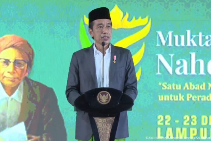 “NU adalah organisasi besar yang memiliki potensi dalam rangka pemerataan ekonomi umat,” ujarnya saat menyampaikan Amanat Presiden RI dan membuka Muktamar NU ke-34 di Pondok Pesantren Darussa’adah, Lampung. Rabu (22/12/2021).