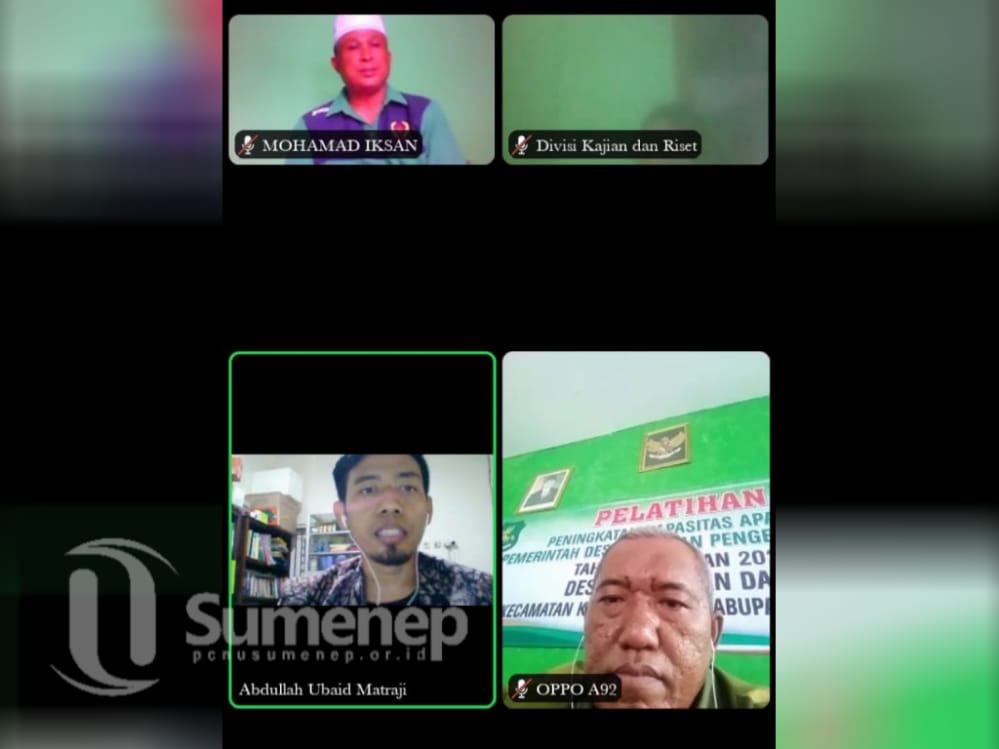 Lembaga Kajian dan Pengembangan Sumber Daya Manusia (Lakpesdam) Pengurus Cabang Nahdhatul Ulama (PCNU) Sumenep melaksanakan Kajian Virtual Bantuan Sosial (Bansos) via Zoom Meeting, Kamis pukul 09. 00 WIB.