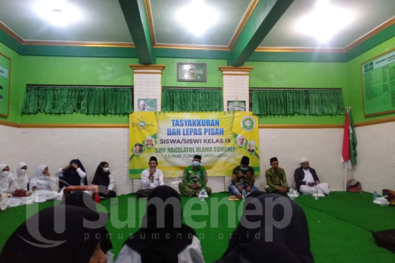 Sekolah Menengah Pertama Nahdlatul Ulama (SMP NU) Sumenep menggelar Tasyakuran dan Lepas Pisah Siswa Kelas Akhir pada Sabtu, (19/6/2021) bertempat di Aula Kantor Pengurus Cabang Nahdlatul Ulama (PCNU) Sumenep.