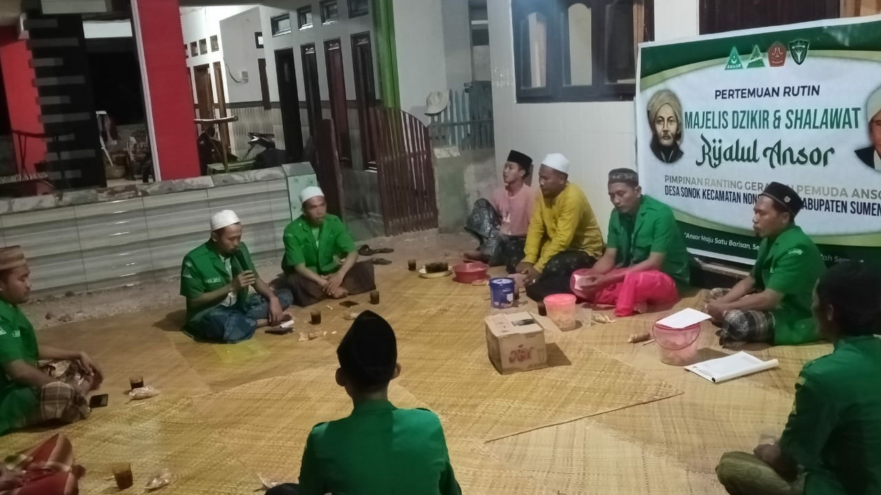Majelis Dzikir dan Shalawat Rijalul Ansor (MDSRA) yang berada di bawah naungan Pimpinan Ranting (PR) Gerakan Pemuda Ansor Desa Sonok menggelar pembacaan Ratibul Haddad pada Kamis (16/06/22).