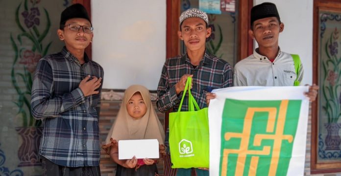 Diceritakan, tepat pukul 09.30 WIB santri mulai berkeliling ke pelosok desa membawa bingkisan berupa sembako, alat tulis, dan sejumlah uang.