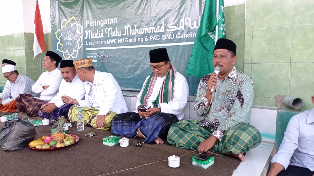 K. Abd. Syakur selaku Ketua MWCNU Ganding dalam sambutannya menyampaikan rasa syukur dan bangga atas terselenggaranya peringatan maulid nabi.