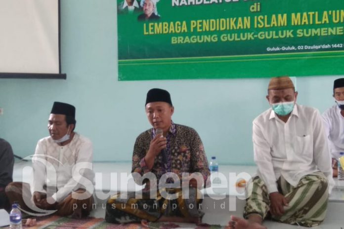 Hal ini disampaikan pada acara Bahtsul Masail PCNU Sumenep, Sabtu (13/6/2021) di Pondok Pesantren Mathla’un Najah Angsana, Bragung, Guluk-Guluk, di hadapan seluruh Pengurus Majelis Wakil Cabang Nahdlatul Ulama (MWCNU) se-Kabupaten Sumenep.