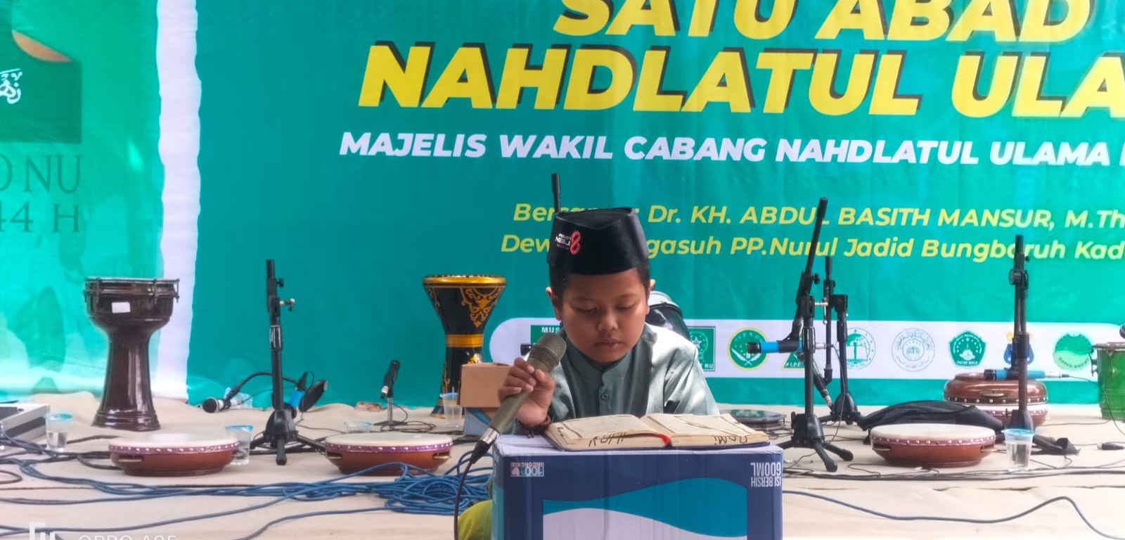 Gema Tilawatil Qur’an menjadi salah satu rangkaian acara pada peringatan Isra’ mi’raj dan 1 Abad NU Majelis Wakil Cabang Nahdlatul Ulama (MWCNU) Pragaan Ahad (19/2/2023) dengan menampilkan Qori’ Cilik bernama Moh Romirrohman.