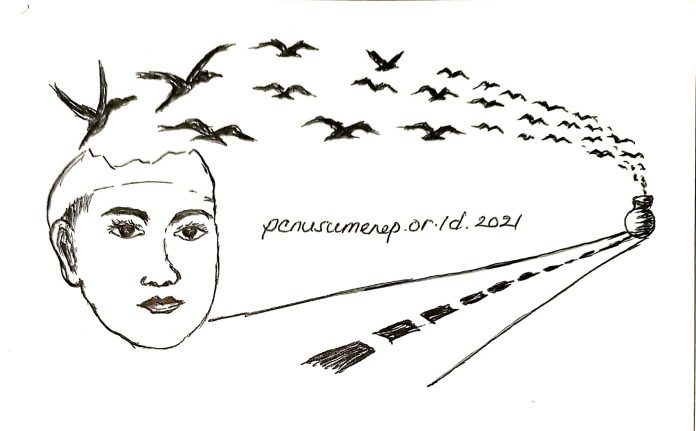 “Ibu yang membesarkanmu, Nak. Ibu yang tahu bagaimana kamu dulu. Dan sekarang, lihatlah kamu, Nak. Bahkan Ibu tak mengenali dirimu. Secara badani, kamu anakku, tetapi apa yang ada di dalam hati dan jiwamu, Ibu sama sekali tak tahu!” jawab Surti sambil terisak. Matanya berkaca-kaca, ada mendung yang tetesnya ingin segera turun meleleh di pipinya.