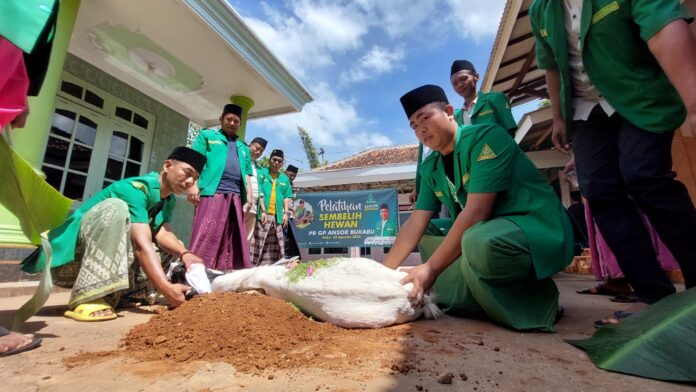 Pengurus Pimpinan Ranting (PR) Gerakan Pemuda (GP) Ansor Ranting Desa Bukabu melaksanakan pelatihan tatacara sembelih hewan, Rabu, (24/8/2022).