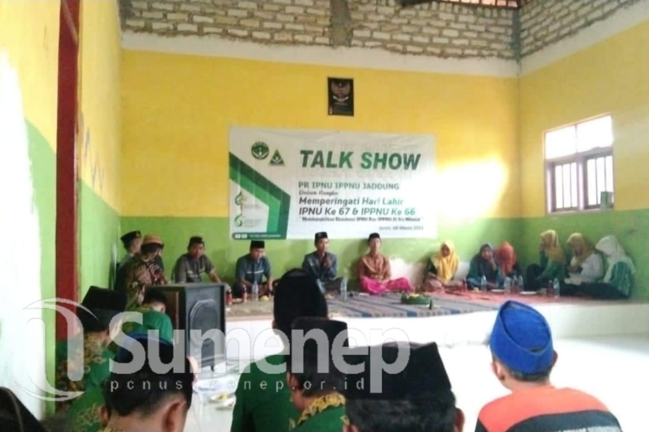 Pimpinan Ranting (PR) IPNU-IPPNU Desa Jaddung Kecamatan Pragaan menjadi salah satu contohnya. Rekan dan rekanita di Ranting tersebut menggelar Talk Show yang bertempat di Aula RA Arrahmah Senin (8/3/2021) siang kemarin. Acara dimulai pada jam 13 00 WIB dengan dihadiri sejumlah kader IPNU dan IPPNU baik dari tingkat ranting, anak cabang, hingga Pimpinan Cabang.