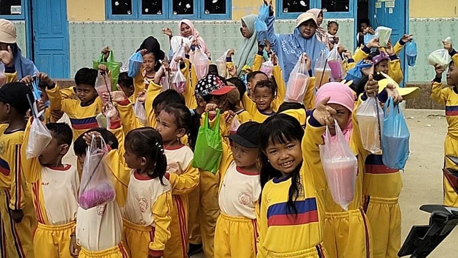 “Anak-anak sangat bersemangat. Mereka belajar bahwa berbagi itu membahagiakan,” ujarnya.