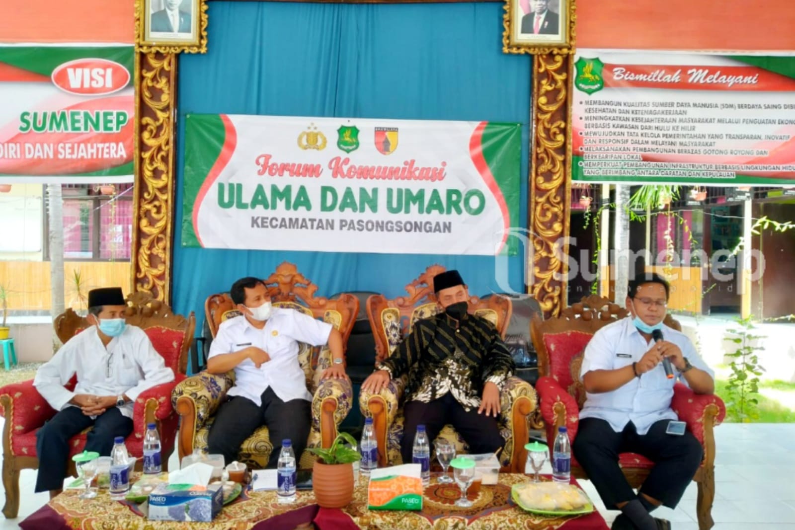Selain dihadiri tokoh masyarakan dan Ormas se-Kecamatan Pasongsongan, Forum Komunikasi Ulama dan Umara yang diprakarsai Forpimka Kecamatan Pasongsongan juga dihadiri Wakil Bupati Sumenep Ny Hj Dewi Khalifah dan delegasi dari Dinas Kesehatan Kabupaten Sumenep. Acara yang digelar hampir 3 jam itu mematuhi protokol kesehatan yang sangat ketat.
