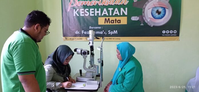 Kegiatan rutin Triwulan yang dihelat Pimpinan Cabang (PC) Fatayat NU Sumenep berbeda dengan sebelumnya. Selain konsolidasi, juga diisi dengan sosialisasi kesehatan mata, periksa dan jantung secara gratis, Ahad (25/06/2023) di kantor Majelis Wakil Cabang Nahdlatul Ulama (MWCNU) Lenteng.