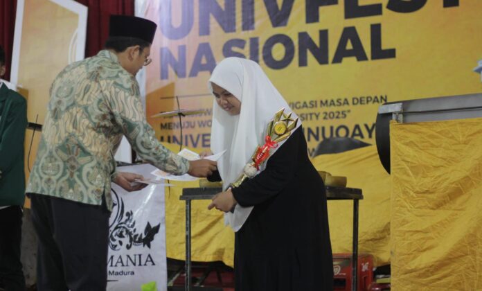 Terinspirasi nuansa kearifan lokal budaya Madura, desain poster karya Lailiyatul Badriyah (22) berhasil meraih juara 1 tingkat nasional di ajang perlombaan Unifest Nasional. Kegiatan tersebut diprakarsai oleh Universitas Annuqayah Guluk-Guluk, Sumenep, Jawa Timur, Ahad sampai Selasa (22-31/12/2024) lalu.